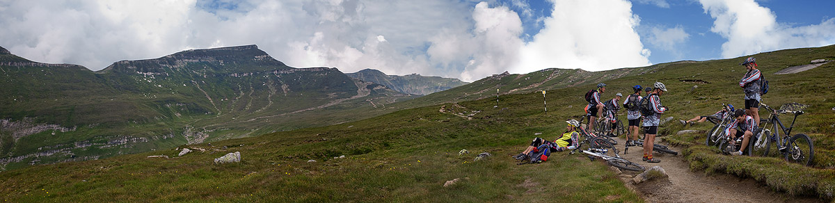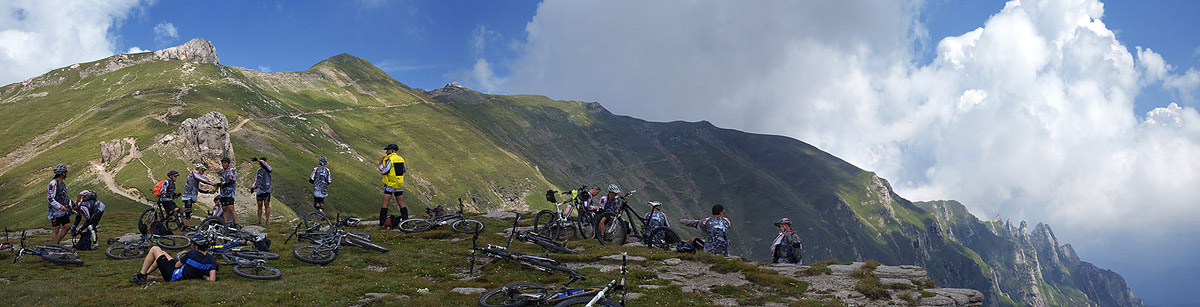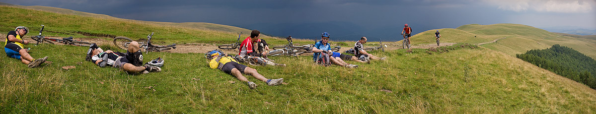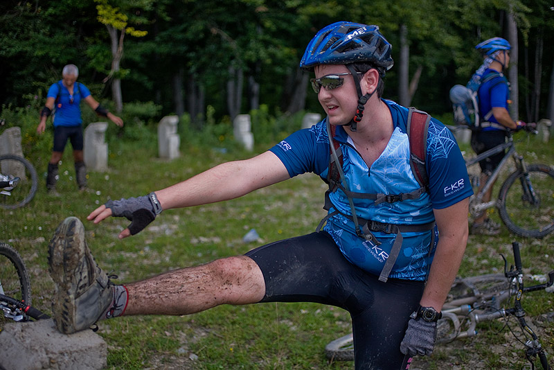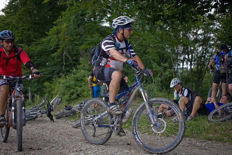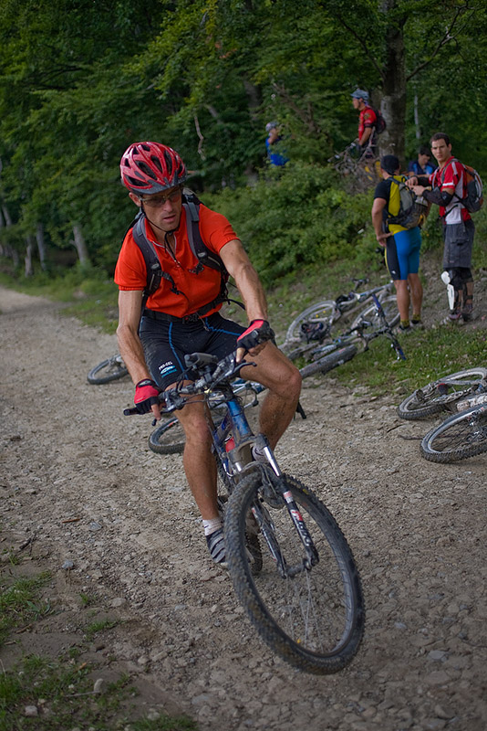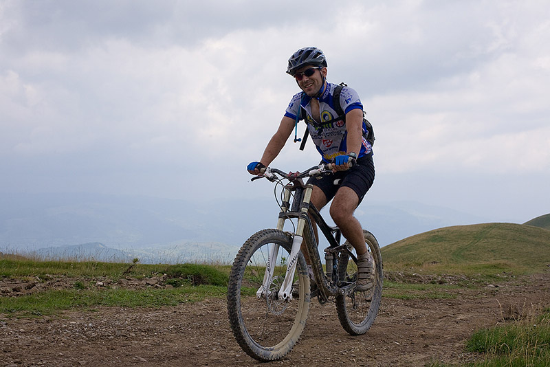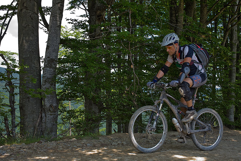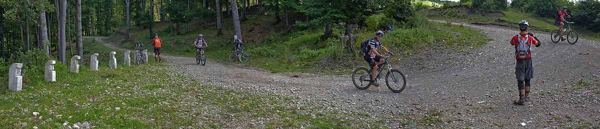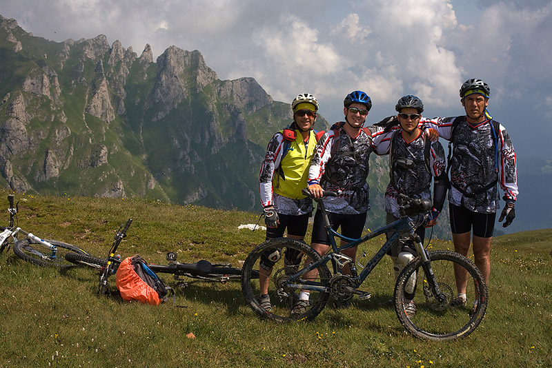 The heavy rain and the style differences didn’t keep us from having a good time. We did do some going up too: Baiului ridge is fairly difficult, the climb through the Zarnesti Keys and Poiana Brasov on the dirt road are no piece of cake either. And we went down: Baiului ridge again, the mega descent from Babele to Sinana, the Balaban ridge from Simon to Poarta, from Poiana Frumoasa to the Well of Botorog under Piatra Craiului – with a welcome lunch stop at Casa Folea. From Poiana Brasov over Tampa to Brasov, and through the river bed in Valea Poienii. Loads of good memories and many bruised legs, proof that going down is also a complicated business – especially on wet terrain. Here’s to more!