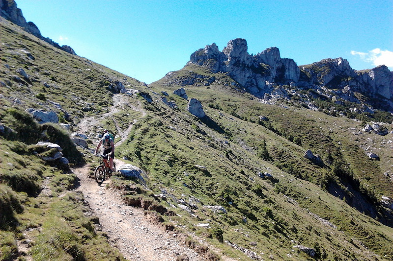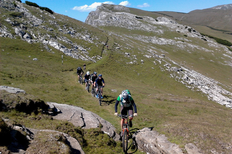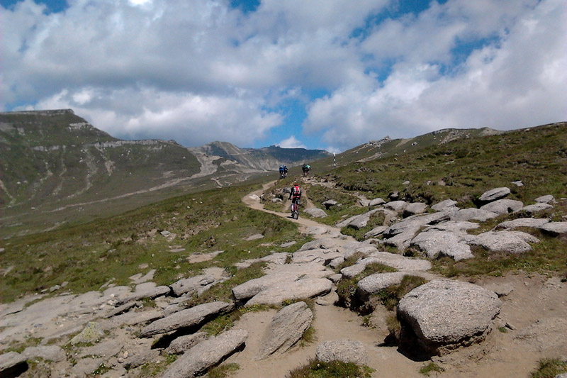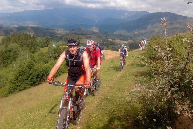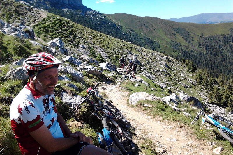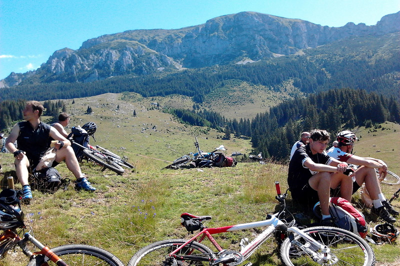 A late report of a tour we organized this summer, with Mihai C. as a guide. He took a group of bikers from The Nederlands and Germany to a seven days tour around Bucegi Mountains. They rocked the trails of Postavaru, they passed by mountain huts (Poiana Secuilor, Poiana Izvoarelor, Padina, Omu), they photographed the Sfinx up the Bucegi mountains and downhill-ed on the West side to finish the tour in style with a day of riding in Piatra Craiului National Park.