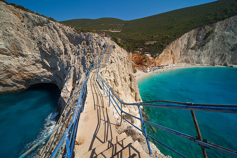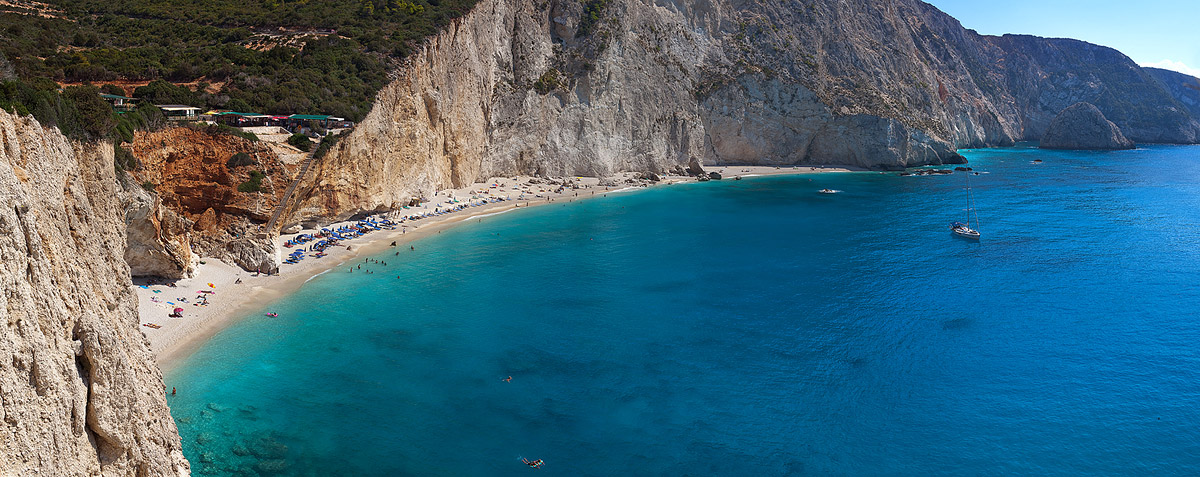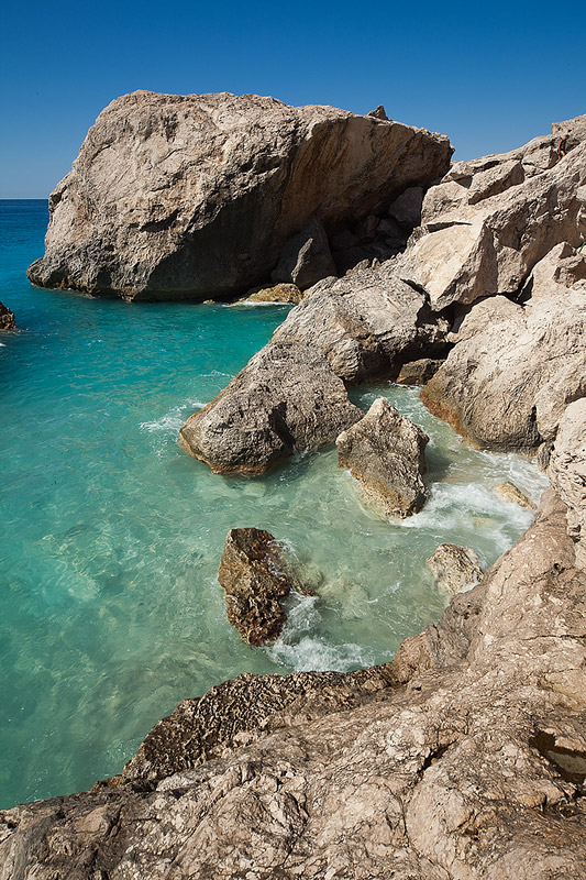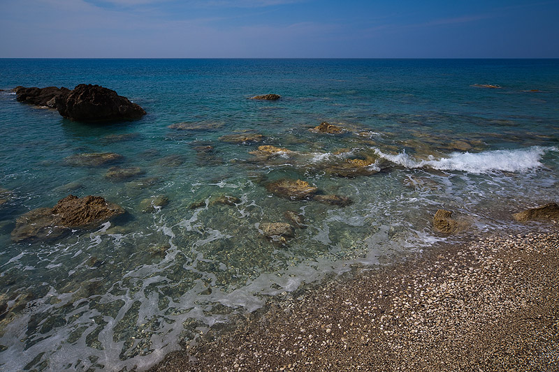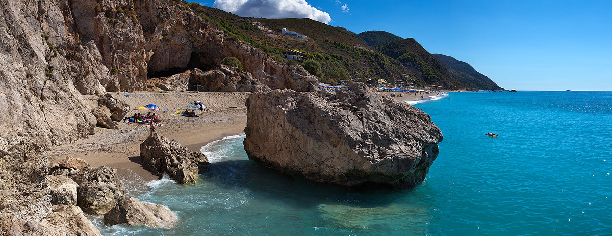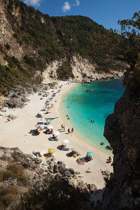 The beach of the day was called Aghiofili, near the very large Vassiliki bay, which was full of wind surfers. Our beach was small and pretty, isolated from heavy winds or waves, but quite popular. It is probably very crowded during high season.