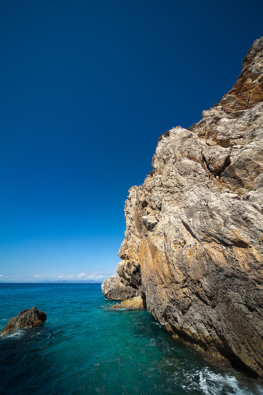The beach is indeed spectacular, as you can see from the photos and video: a huge wall abruptly descends into the blue waters, leaving but a strand of sand for the tourists. The constant waves account for the fine sandy beach, but we got a quieter day. On the way back we descended to the most Southern tip of the island, near the lighthouse and the temple of Apollo. We got back to Vassiliki on our bikes. Nearly 50 km, and 1,800m elevation.