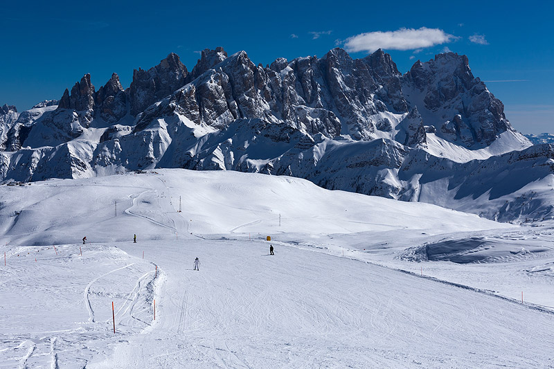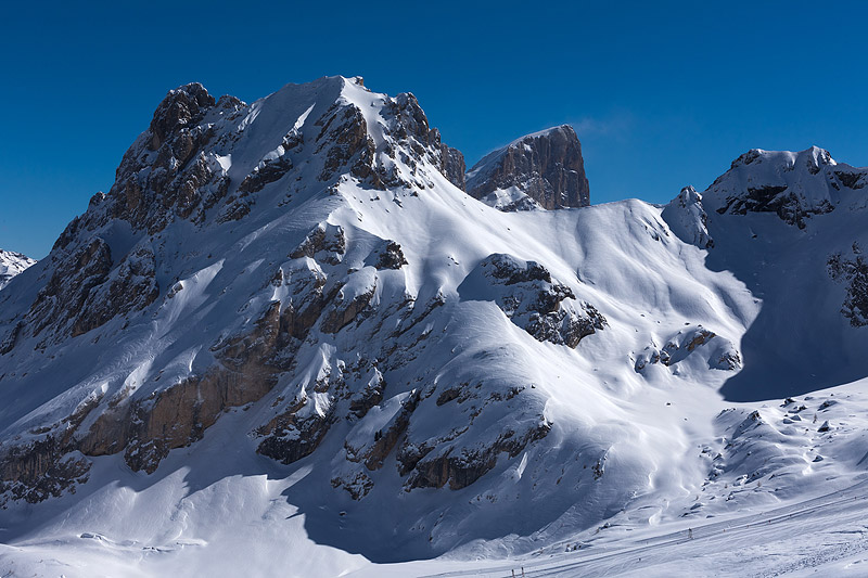 I won’t bother you with statistics about the ski-lift network, it’s beyond impressive. As is the road network, with high mountain-roads climbing up to 2000 m from every valley on almost any direction, kept open for traffic even during the hard winter so skiers from all over the world can come and do the famous Sella Ronda tour.