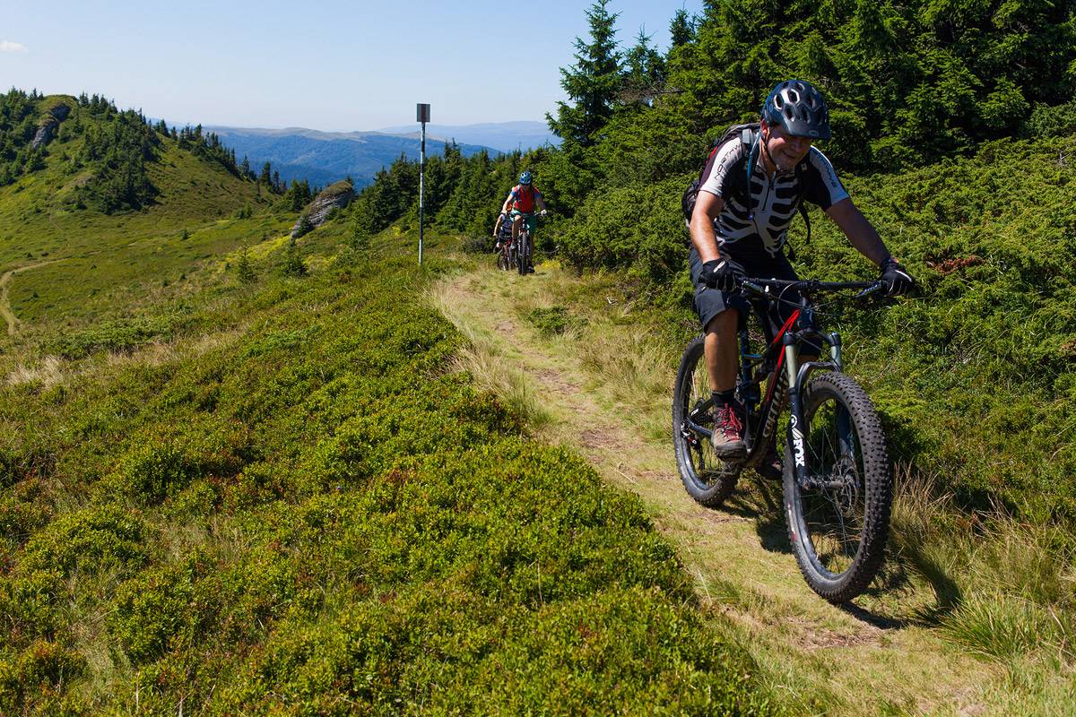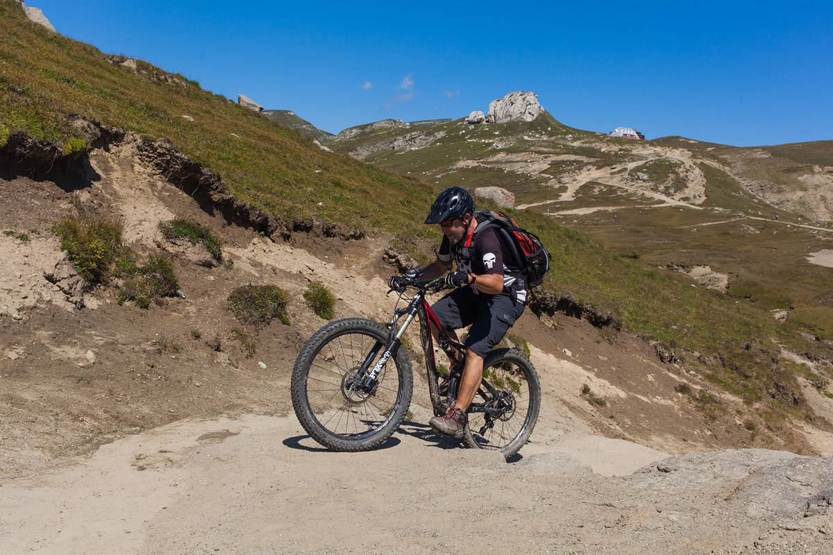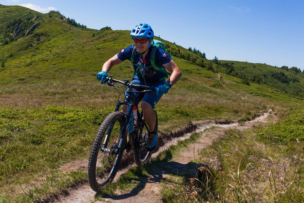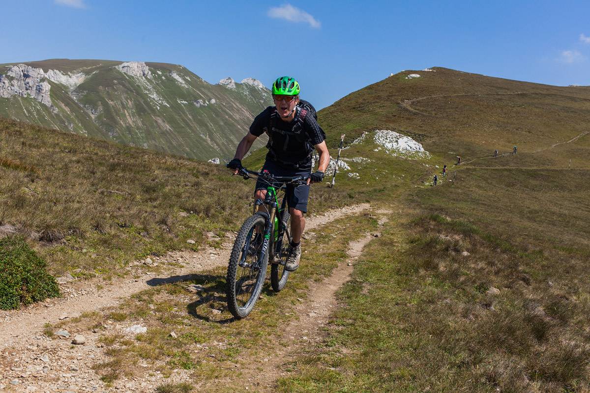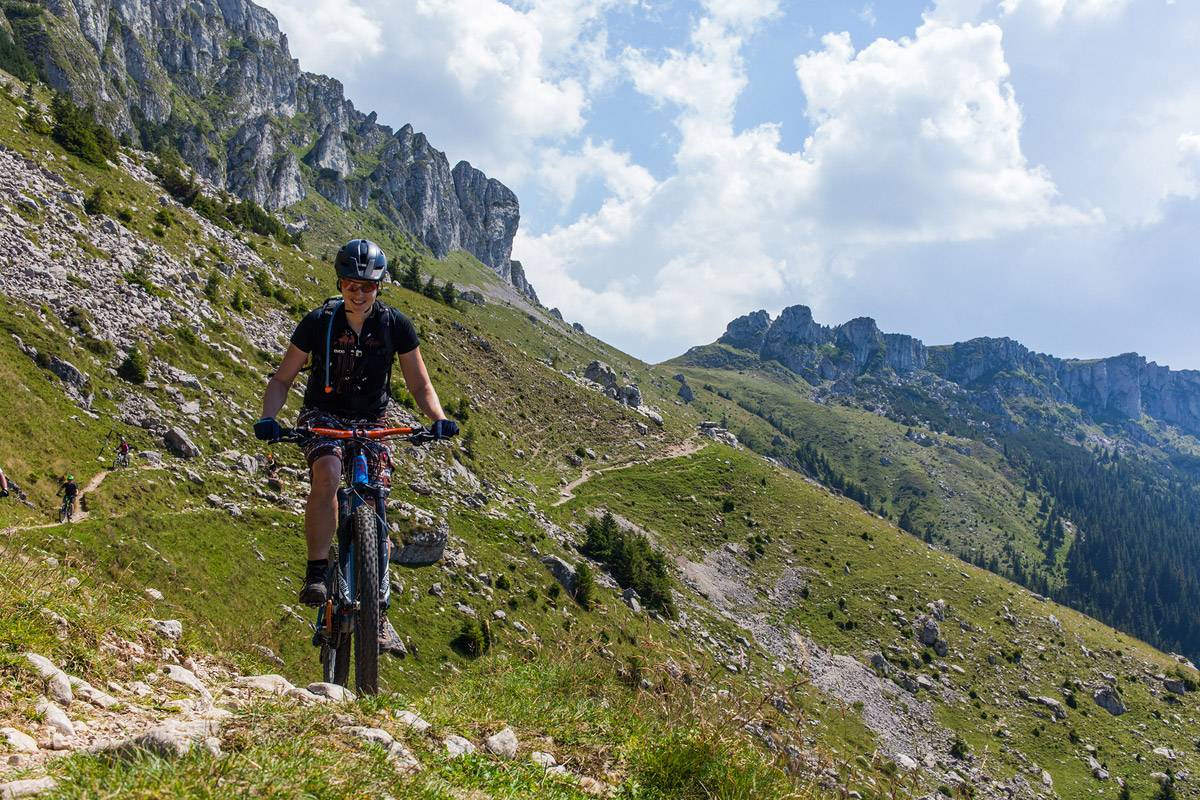As you can see from the rather generous photo gallery below, the weather was just perfect, as one expects for the beginning of August. We enjoyed a wide diversity of tracks: alpine, forest or mixed terrain, rock and roots gardens, and flowy trails. There were unforgiving climbs, a few push and carry bike sections, the unavoidable price one must pay in order to reach the exquisite trails. And there were some trails to remember: the Ciucaș high trails, the long descent from Baiului to Azuga, the hidden treasure above Busteni town, the trails near Omu Peak, the one and only Strunga Pass descent, the Piatra Craiului tracks.