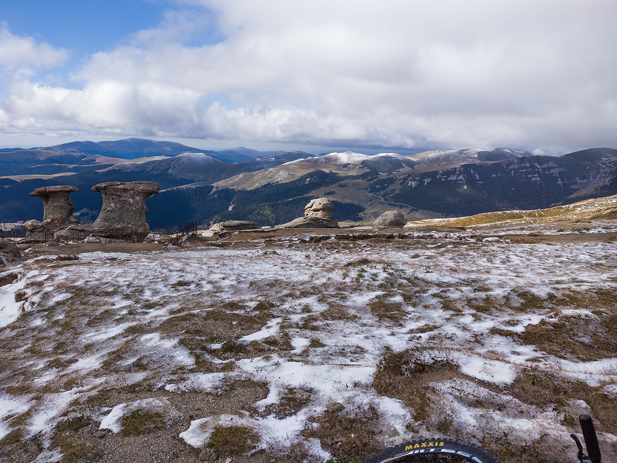 There is always a gamble when doing a long mtb tour in September. While your chances to get nice, dry, stable weather with mild temperatures in the mountains around Brasov are probably the highest along the whole year, there’s always the issue of those few days when things turn wintery, just to announce the coming cold season. The first snow up to 2000 m plus usually comes in September, sometimes at the beginning of the month, sometimes later, towards October. It fades away in a matter of hours, or in a day or two, and it might make mountain biking a bit more testing.