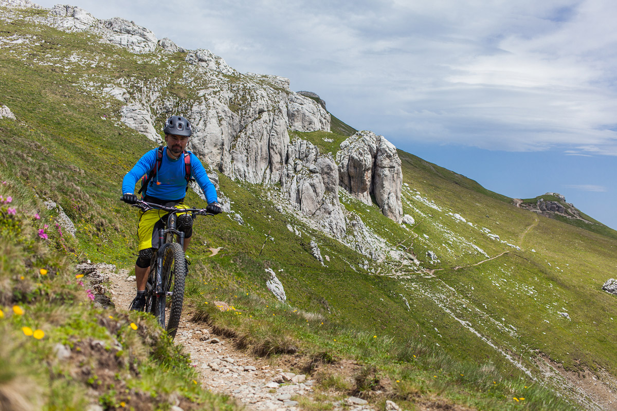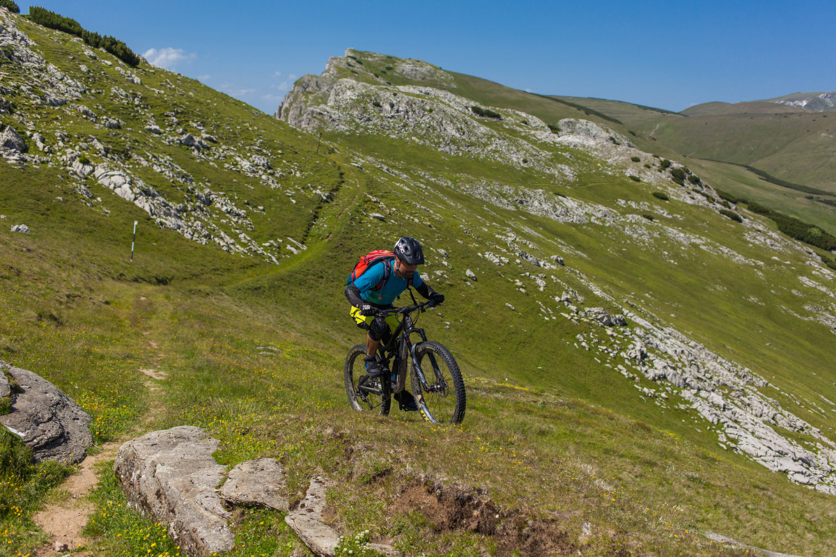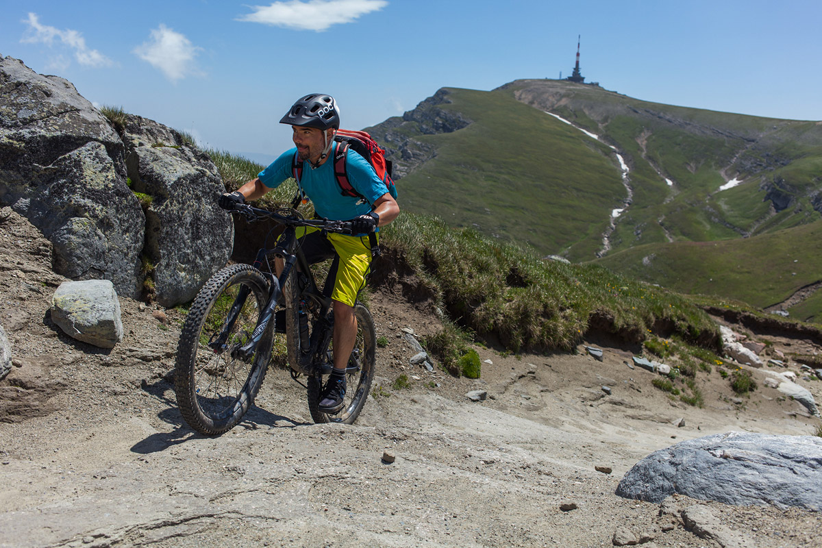 Bucegi Mountains are by far the most bikeable high altitude mountains in Romania. With a high plateau with altitudes around 2000 metres, with the highest point (Omu Peak, 2507 m) reachable by bike, with some cable car options, a high altitude asphalt road and a good variety of huts and hotels, the Bucegi Natural Park can easily accommodate cross country riders and enduro/freeride enthusiasts.