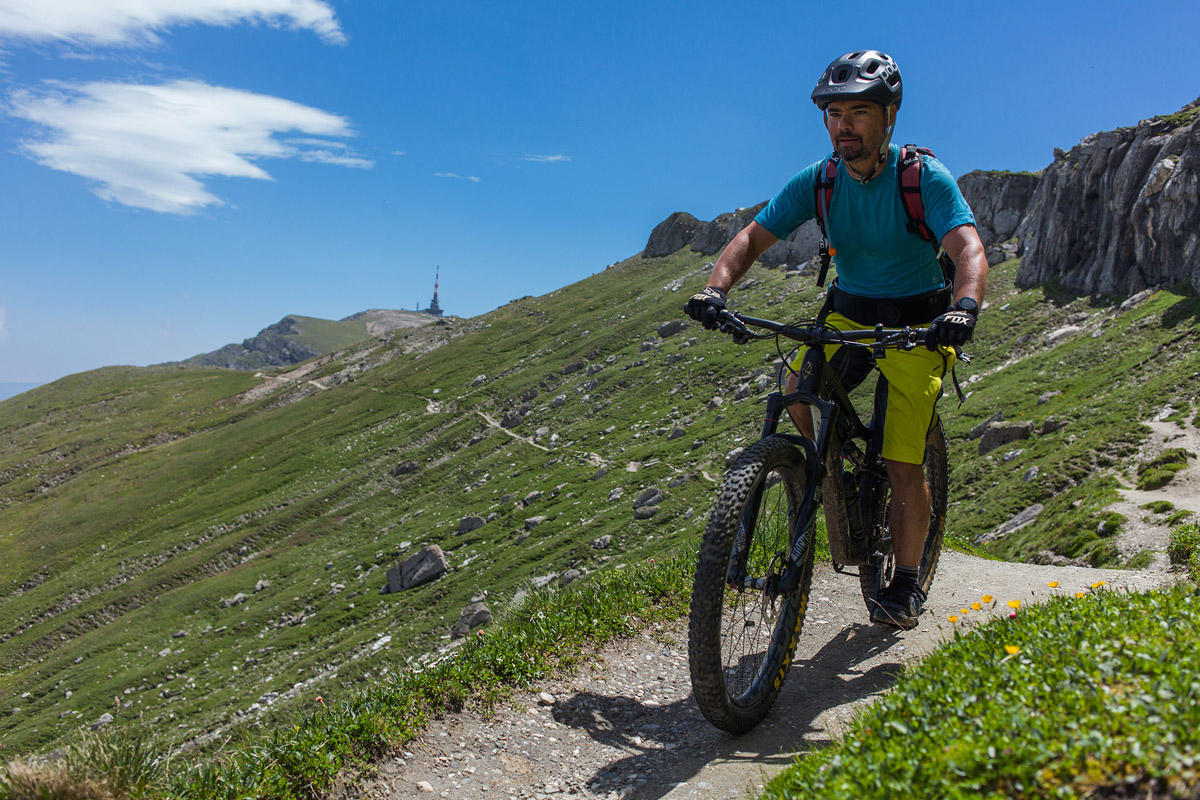 The views are amazing, local sheep cheese you cannot find in Switzerland. If you want to get away from the crowds and to ride nice but techy trails it is highly recommended.