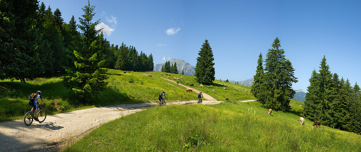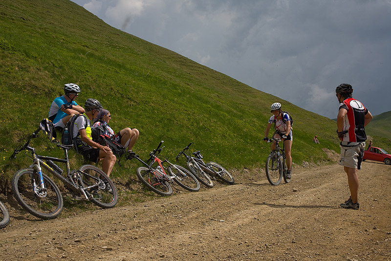 It was a wonderful week – and these are not my words, but those of the three Swiss and two Italians who formed the group. What they noticed was that in a relatively small area (Baiului, Bucegi, Piatra Craiului, Postavaru), you can do so many different tours. It’s like each day you are in a new place, from the dinosaur back of the Baiului ridge to the Susai forests, from the opening under the north eastern wall of Bugeci to the Sohodol hills, from the pretty villages to the rocky sites of Zarnest: more then 500 km of dirt roads and trails (less then 10 km of asphalt), going up almost 6000m and then down the same. I was a bit nervous about the ascents, but the group was beyond my expectations. Especially Claudio, who at 60 is an impressive climber. It’s true, he had the lightest bike. I can’t begin to imagine how much he paid for it, made entirely out of carbon fiber and Shimano XTR, but he was all lean muscle too. They weren’t into cross country marathons, but I think they would have done really well at any Romanian contest.