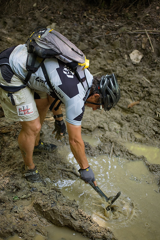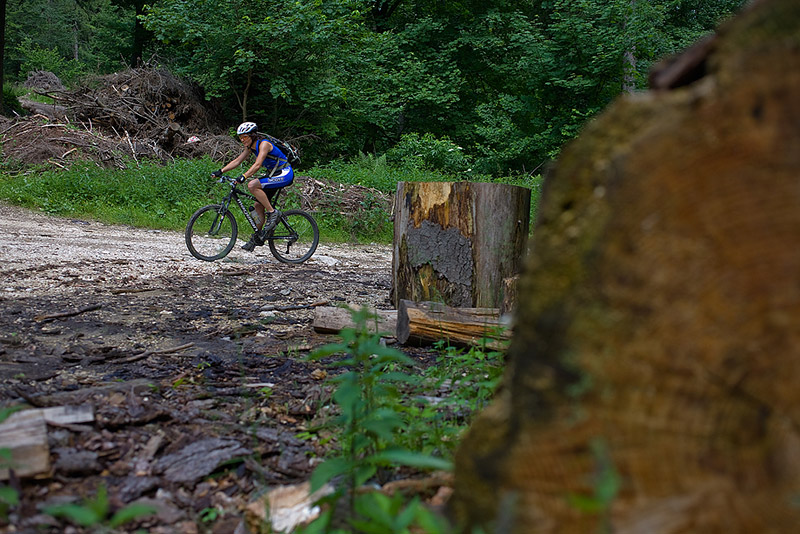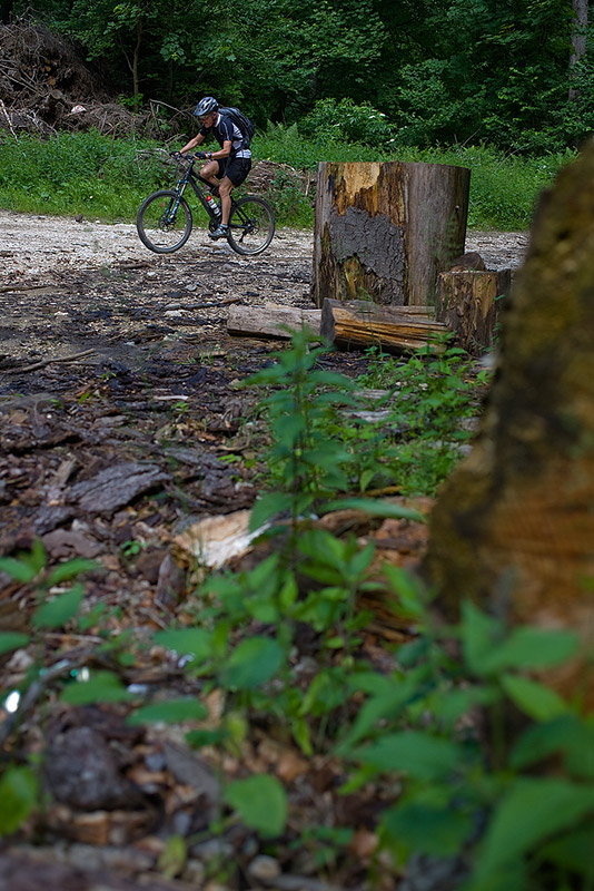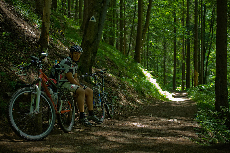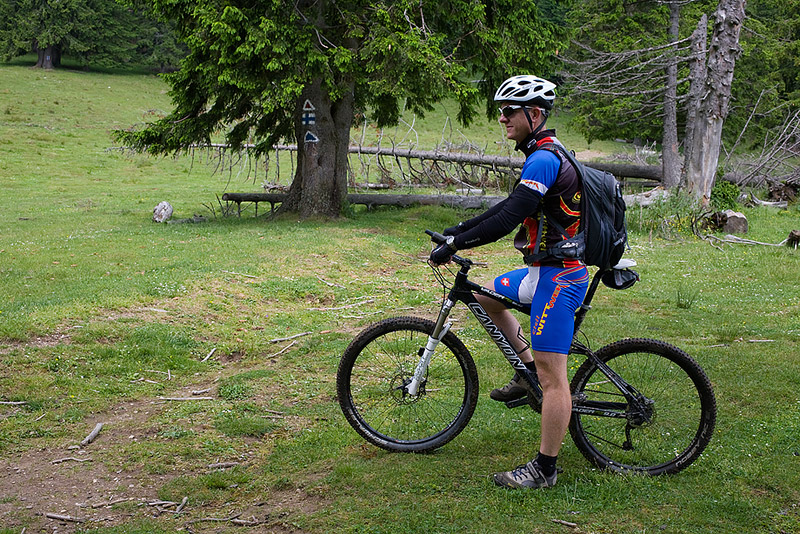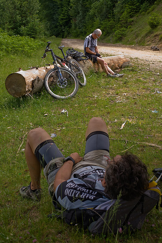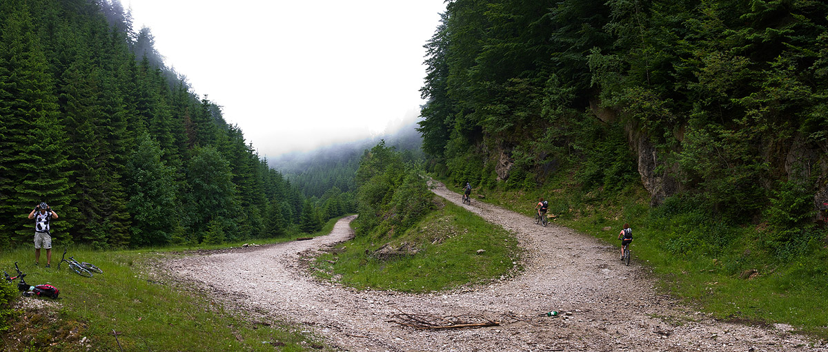 We started with a 7 km warm up, on a dirt road that trails along the railway from Sinana to Posada – this time it was deserted, because it was a Sunday. From the Posada train station (elevation 640m) the real ascent starts and keeps on going and going for 22 km on end ‘till you reach about 1800m. Surprisingly, the most annoying part was not the heat, or the excessive humidity, and not even the inclination. It was the flies! Hundreds upon hundreds of obnoxious flies swarming around us from when we got out of the woods and until we reached 1800m. At least they weren’t biting. There were times when if I kept my hand on the handle bar for more then one minute, they would cover the entire glove – probably looking for the sweat I kept wiping from my forehead – even at 1800m, it was still very warm. We finally got rid of them during the descent, on the Sorica ridge and all the way down to the national road.
