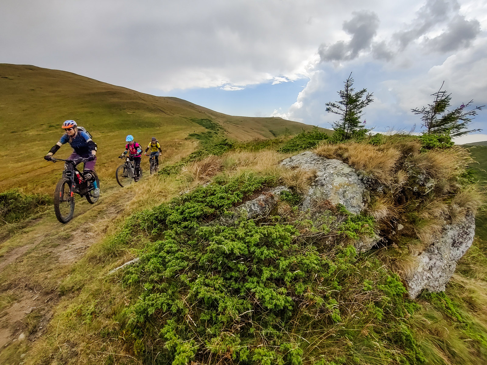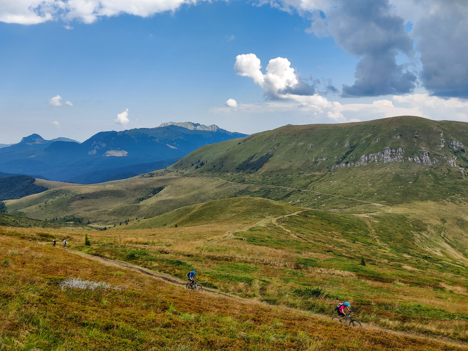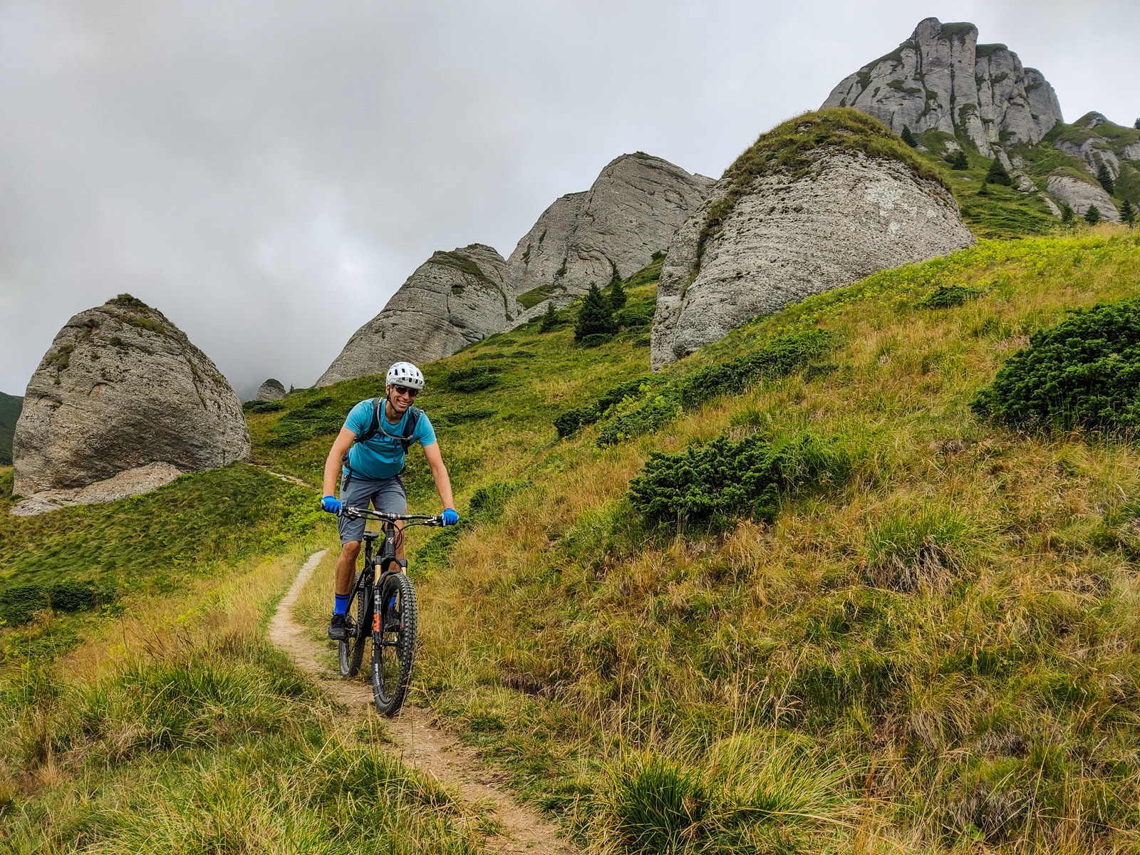 The photo gallery below, as extensive as it is, will only tell a small part of an amazing experience. We explored five mountains in Central Romania (Ciucaș, Grohotișului, Baiului, Bucegi, Piatra Craiului). We’ve biked through forests, through alpine pastures, on mountain ridges and along valleys. We navigated flowy trails, rock and root gardens. We climbed hard, pushed the bikes and even carried them a few times, and we rolled down on all the types of trails you can imagine.