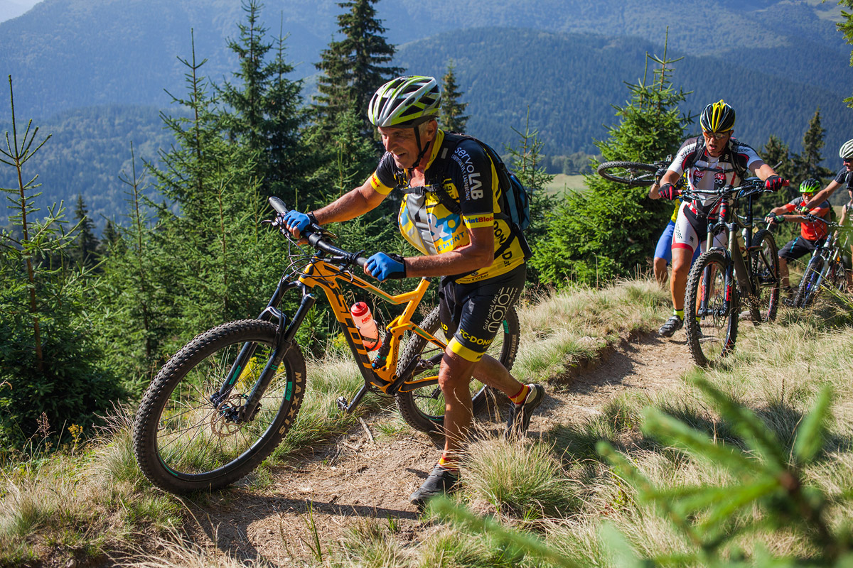 And what better endurance test than the Transylvanian Alps tour? Intensive climbs, technical descents, single trails riding up and down from 800 to 2500 m altitudes, through forests, pastures, deep into the mountain gorges or on the mountain crests.